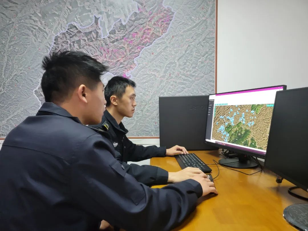 ▲武夷山國家公園執(zhí)法支隊(duì)隊(duì)員利用巡檢系統(tǒng)后臺查看、布設(shè)巡護(hù)隊(duì)員的巡查點(diǎn)位。