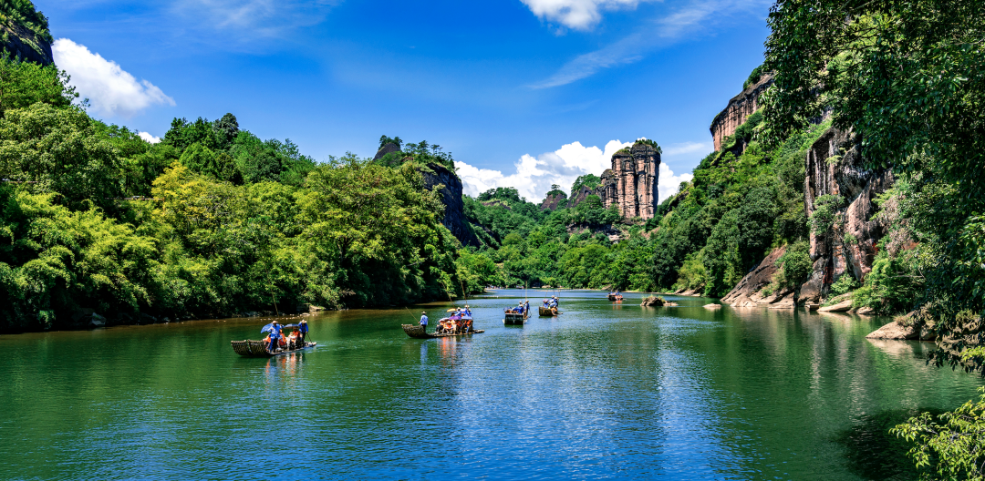 ▲武夷山九曲溪兩岸的丹霞景觀(新華社記者 姜克紅 攝)
