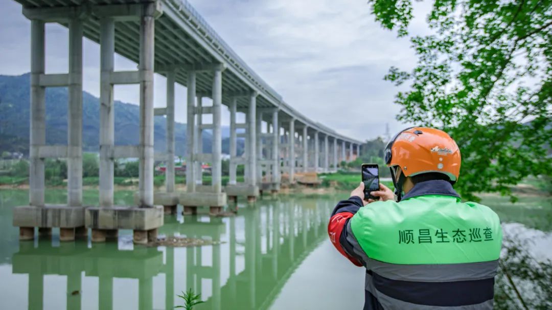 ▲順昌生態(tài)巡查拍照取證。(吳仁明 攝)
