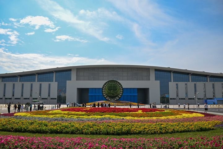 ??這是2025年9月1日拍攝的天津梅江會(huì)展中心外的花壇。新華社記者 孫凡越 攝