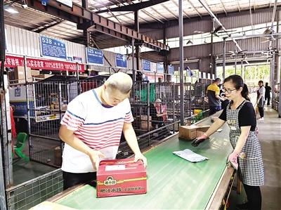 一位開智學(xué)校畢業(yè)的孩子(左一)在快遞公司流水線上工作