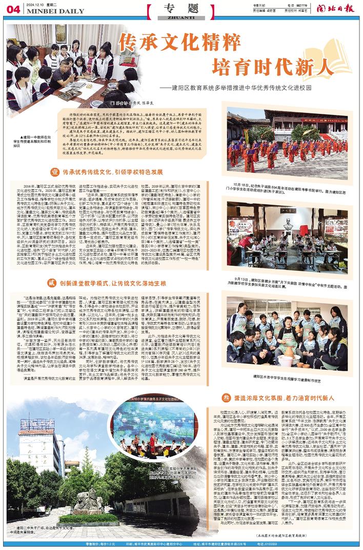 傳承文化精粹 培育時(shí)代新人——建陽區(qū)教育系統(tǒng)多舉措推進(jìn)中華優(yōu)秀傳統(tǒng)文化進(jìn)校園