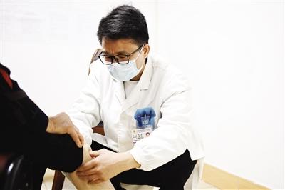 李其戰(zhàn)正在確認(rèn)患者痛風(fēng)發(fā)作的部位