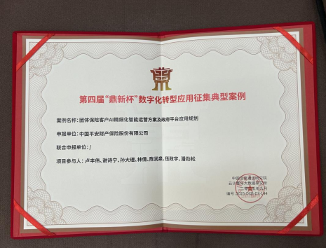 AI+保險(xiǎn)新范式!平安產(chǎn)險(xiǎn)福建分公司創(chuàng)新項(xiàng)目入選“鼎新杯”數(shù)字化轉(zhuǎn)型典型案例