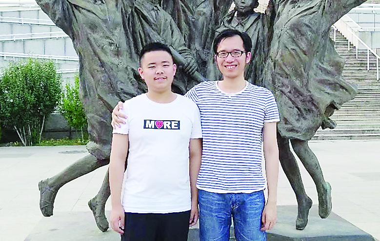 2019年6月,楊培文(左)與指導(dǎo)老師在清華大學(xué)校園內(nèi)合影。 (南平一中供圖)