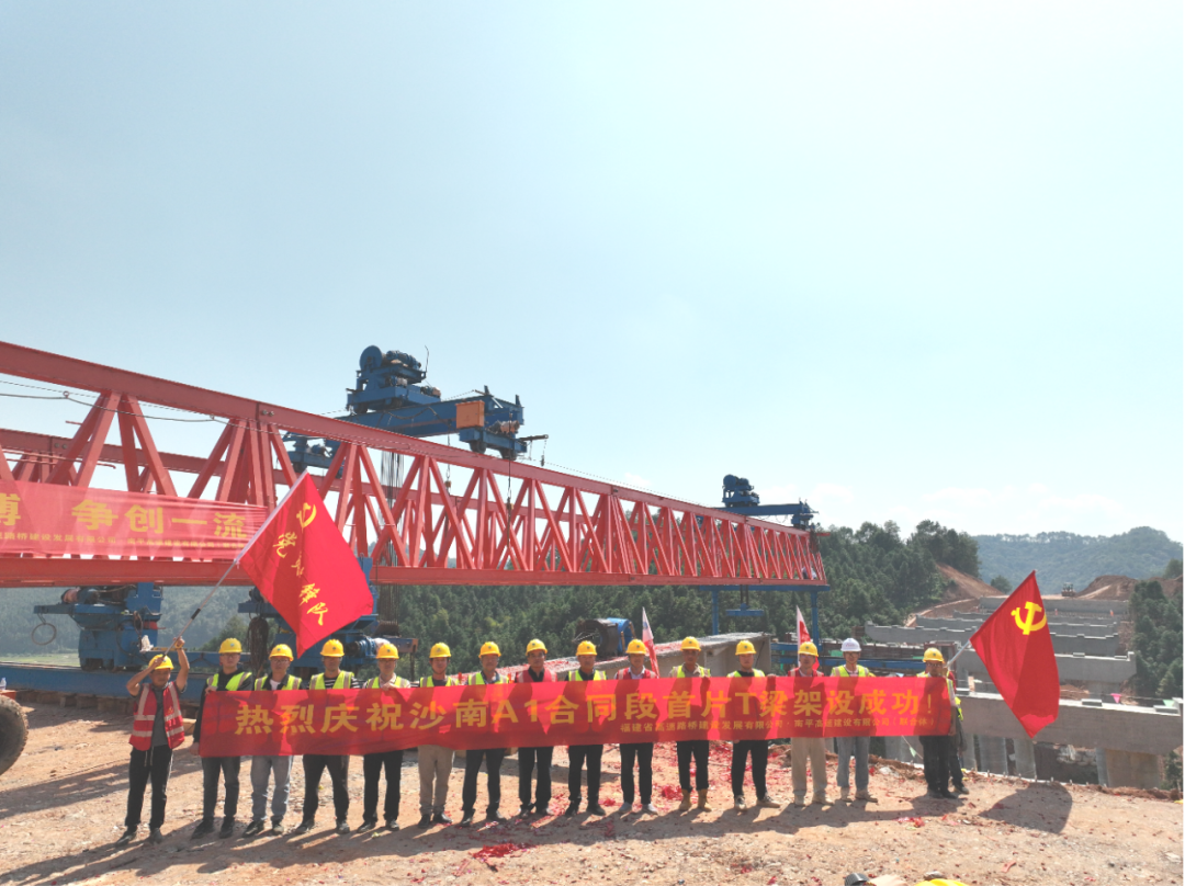 工程建設(shè)板塊|沙南高速公路項(xiàng)目南平段首片T梁成功架設(shè)