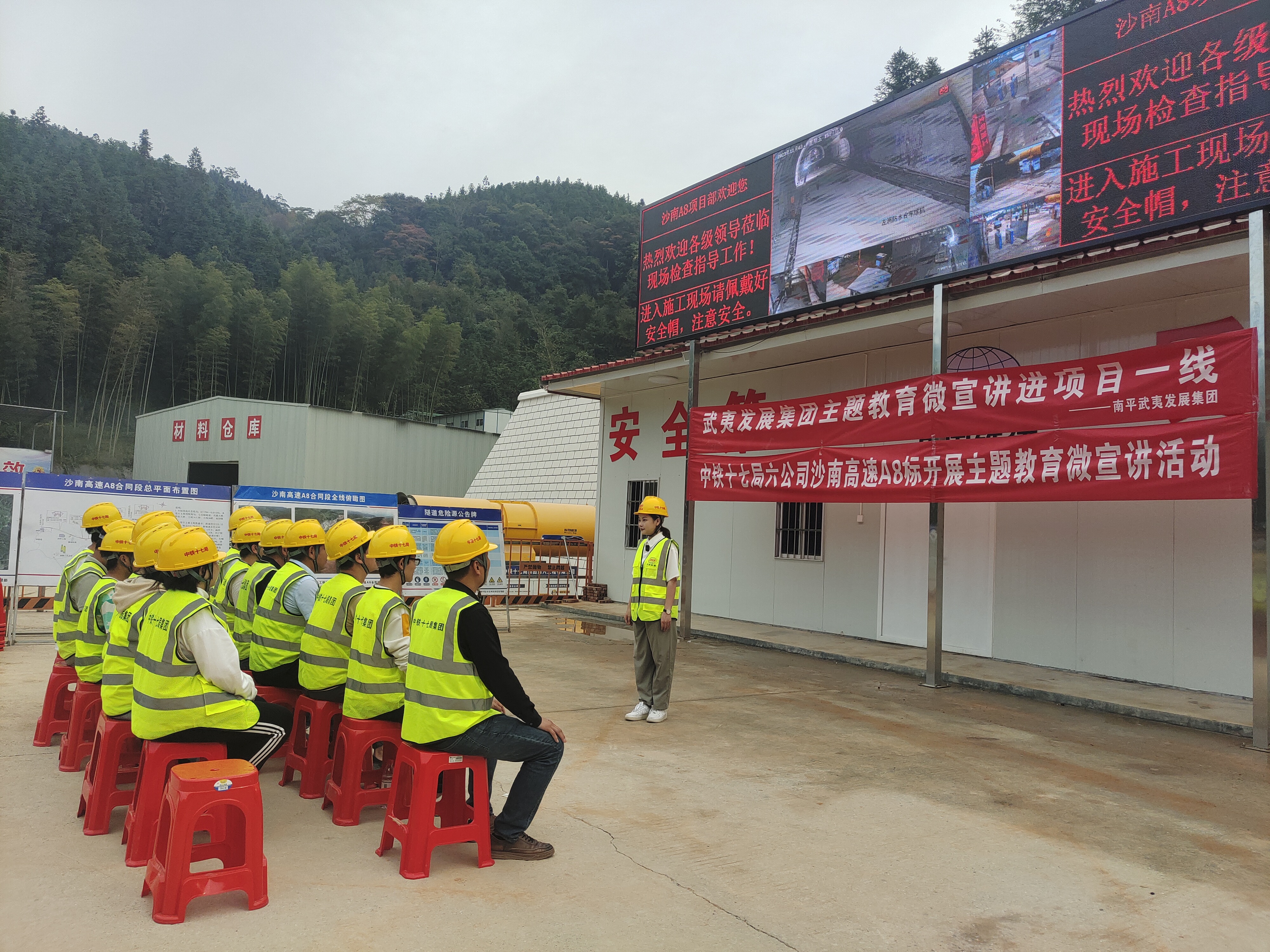 11月3日,南平武夷發(fā)展集團和中鐵十七局六公司沙南高速A8標聯(lián)合開展主題教育微宣講活動,主動邀請南平市委組織部、南平市國資委選聘宣講員葉佳迎到施工現(xiàn)場進行主題教育宣講,推動主題教育走深走實。