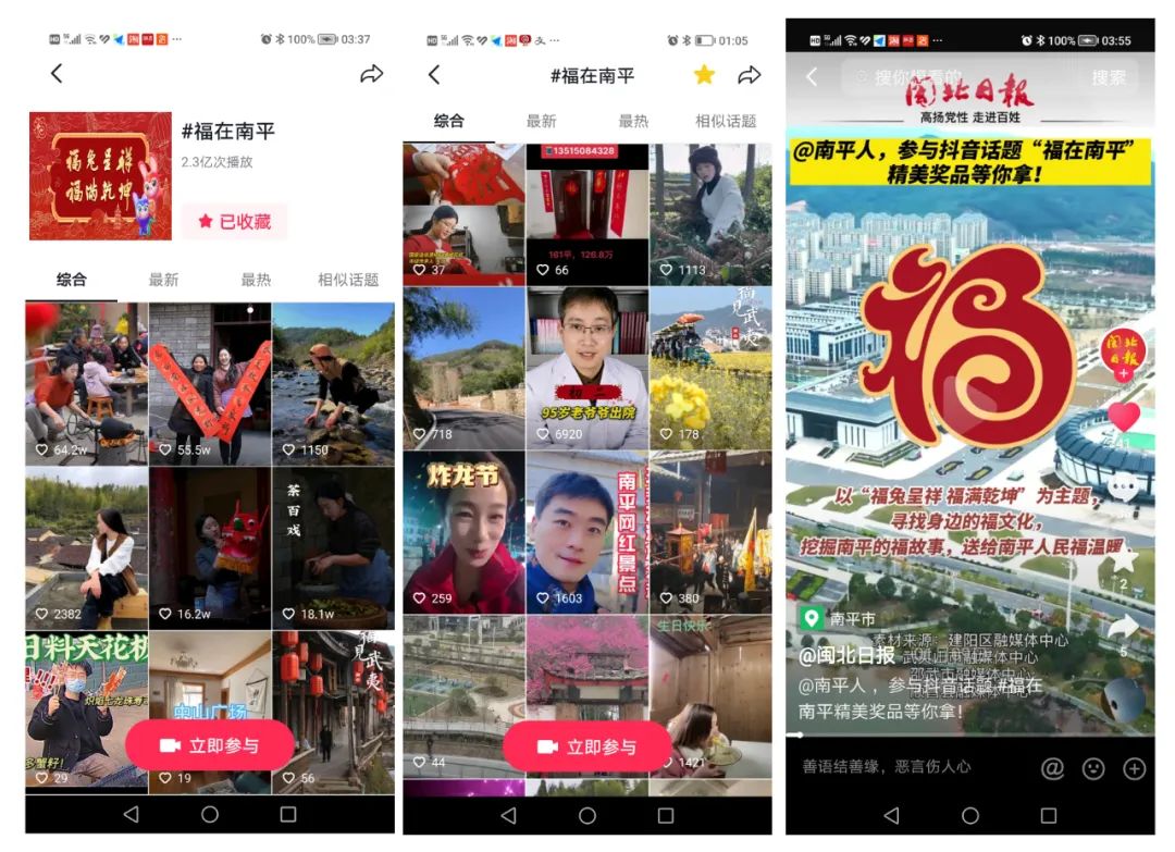 “#福在南平”抖音話題活動播放量已達(dá)2.6億次。
