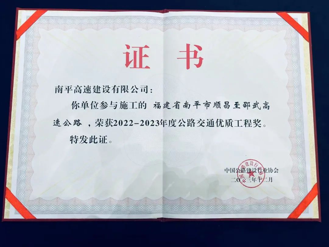 1月13日,由中國(guó)公路建設(shè)行業(yè)協(xié)會(huì)舉辦的第五屆公路建設(shè)高質(zhì)量大會(huì)暨2022-2023年度公路交通優(yōu)質(zhì)工程獎(jiǎng)表彰大會(huì)在湖北武漢召開(kāi)。會(huì)議對(duì)132個(gè)優(yōu)質(zhì)項(xiàng)目進(jìn)行了表彰,武夷發(fā)展集團(tuán)南平高速建設(shè)有限公司參建的福建省南平市順昌至邵武高速公路項(xiàng)目榜上有名。