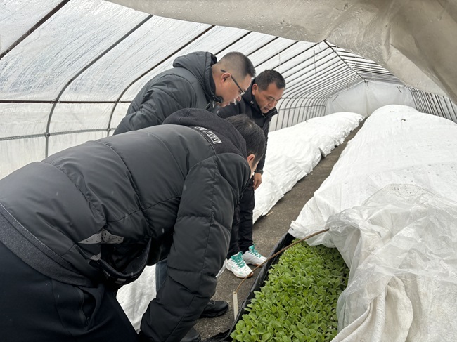 三是突出重點(diǎn),關(guān)注農(nóng)業(yè)。正值煙葉育苗關(guān)鍵時(shí)期,鎮(zhèn)黨委書記魏劍、鎮(zhèn)長(zhǎng)蔡浩宗帶領(lǐng)農(nóng)技員深入烤煙育苗基地察看防寒防凍情況,耐心聽取村民育苗保苗的措施,補(bǔ)充提出加強(qiáng)防寒措施,同時(shí)增派農(nóng)技員深入各育苗基地,竹蓀、油菜花等經(jīng)濟(jì)作物種植地提供技術(shù)指導(dǎo),為農(nóng)作物生長(zhǎng)“保駕護(hù)航”。 鎮(zhèn)黨委書記魏劍、鎮(zhèn)長(zhǎng)蔡浩宗帶領(lǐng)農(nóng)技員深入烤煙育苗基地察看防寒防凍情況。