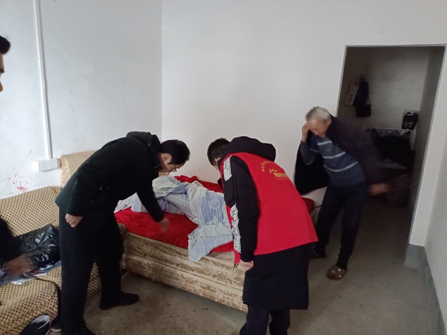 鎮(zhèn)紀(jì)委書記葛玉忠聯(lián)合鎮(zhèn)社工站入戶孤寡老人家中察看過冬保暖情況。