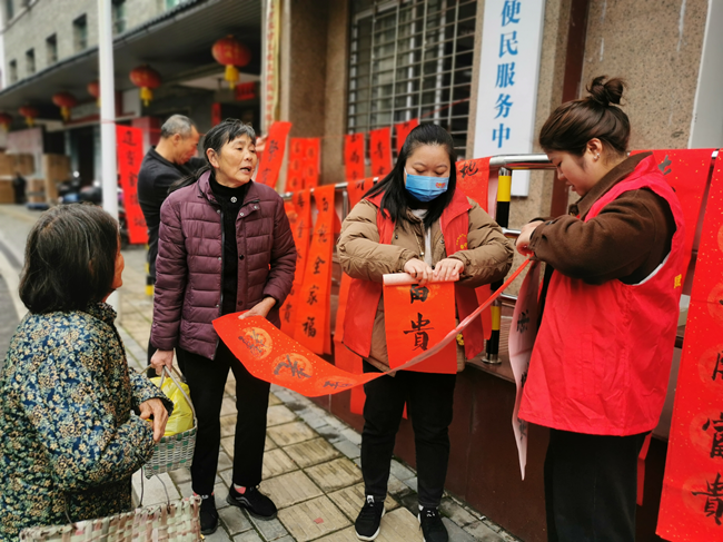 “還是手寫的春聯(lián)更有年味!”“手寫的春聯(lián)才有儀式感!”整個活動現(xiàn)場洋溢著迎新春的喜氣,受到群眾的一致好評,200余副春聯(lián)、100個福字很快贈送一空。
