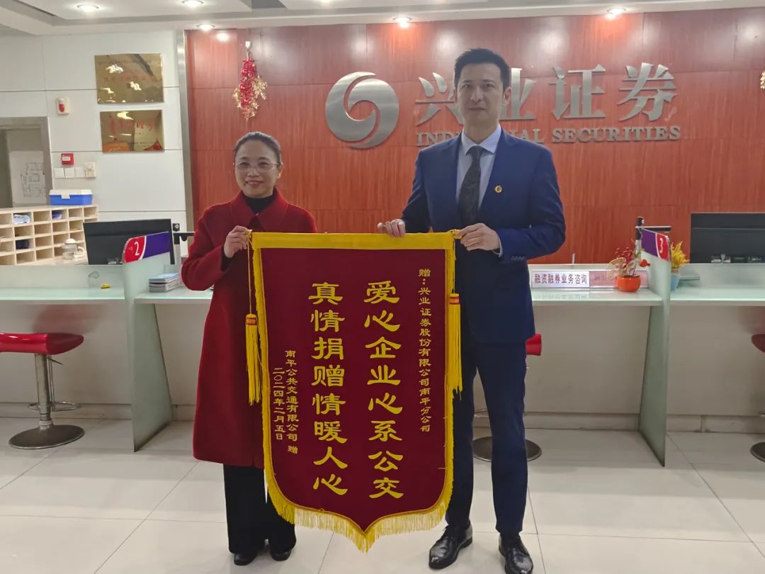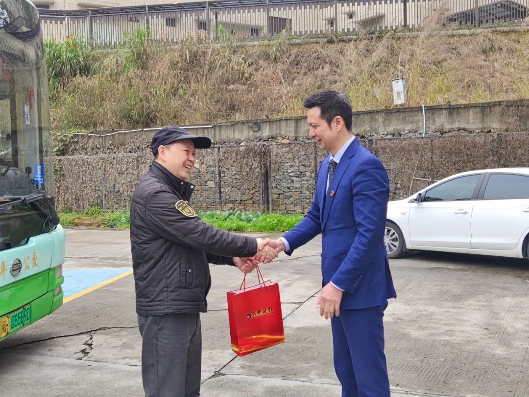 爆竹聲聲迎新年。除夕下午,興業(yè)證券股份有限公司南平濱江中路營業(yè)部副總經(jīng)理邵宇華與工作人員來到江南公交站點,為駕駛員送上新年餐:“師傅,新年快樂,你們辛苦了!”接過新年餐,7路駕駛員林錦直呼:“很細心、很暖心”,冬日的寒冷在充滿愛心的早餐中,化為絲絲暖意。