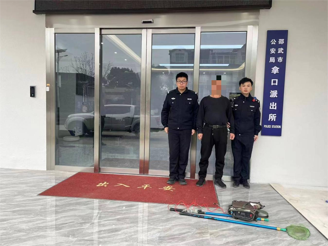 近日,邵武市拿口鎮(zhèn)派出所接到群眾舉報(bào),在朱坊溪山下段有人非法電魚。拿口鎮(zhèn)河道警長胡斌率隊(duì)立即開展行動(dòng),當(dāng)場查獲1名非法電魚嫌疑人,收繳1個(gè)電瓶、3斤小魚。