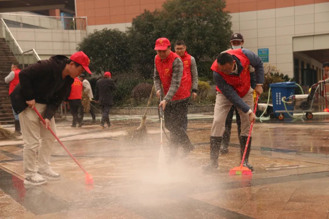 在云谷步行街,機(jī)關(guān)支部黨員身穿統(tǒng)一的志愿者服裝,手持掃把、垃圾袋,分組對廣場路面進(jìn)行清理,并對廣場周邊公園進(jìn)行了清潔。參加活動的黨員和入黨積極分子,有的負(fù)責(zé)擦拭公共設(shè)施,有的清洗地面及階梯,不落下一個角落,不放過一個死角,熱情洋溢地投入到志愿服務(wù)中。
