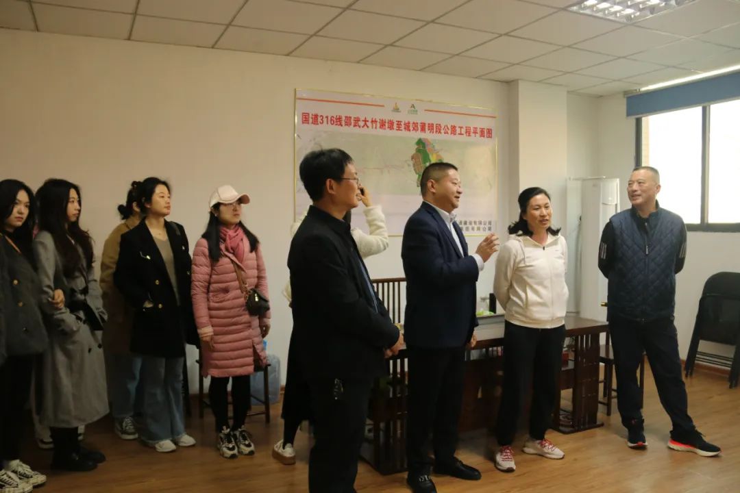 一行人參觀了集團在建重點項目——國道G316線邵武大竹謝墩至城郊莆明段公路工程。該項目的建設(shè)可以完善邵武市公路路網(wǎng)骨架系統(tǒng),分離過境交通流,提升區(qū)域道路通行能力,改善區(qū)域交通環(huán)境,提高公共服務(wù)均等化水平,帶動沿線地塊產(chǎn)業(yè)的發(fā)展,對邵武市經(jīng)濟的發(fā)展具有十分重要的作用。通過聽取介紹、現(xiàn)場交流等方式使大家詳細了解了該項目的建設(shè)情況。