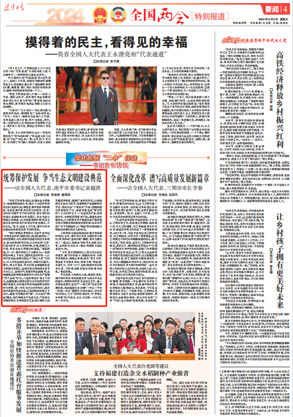南平要聞|全國人大代表、南平市委書記袁超洪:統(tǒng)籌保護(hù)發(fā)展 爭當(dāng)生態(tài)文明建設(shè)典范
