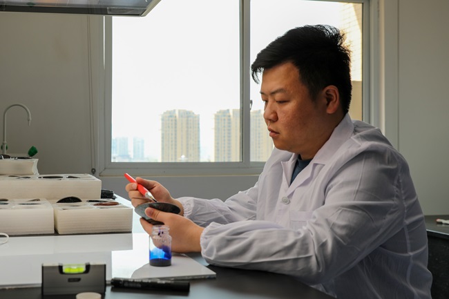 工作人員檢測建盞外觀