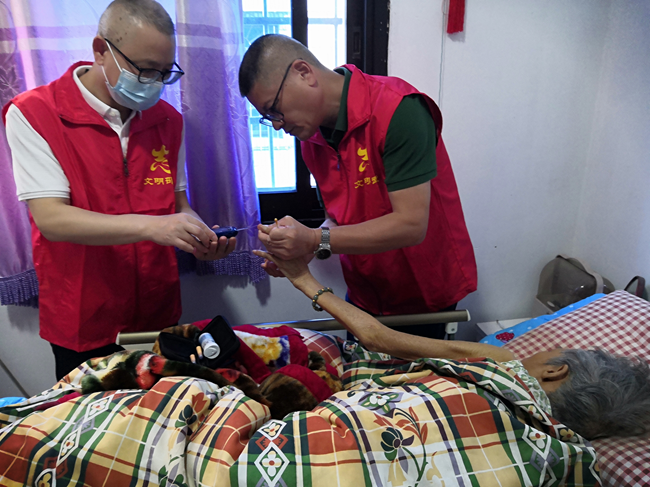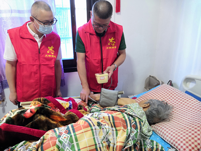 了解具體情況后,當(dāng)天下午衛(wèi)生院院長蘭志斌帶隊(duì)上門幫陸女士母親體檢,包括測(cè)血壓、測(cè)血糖、聽診心肺及健康咨詢等履約服務(wù)。針對(duì)陸女士母親的身體情況,囑咐陸女士要如何照癱瘓老人。