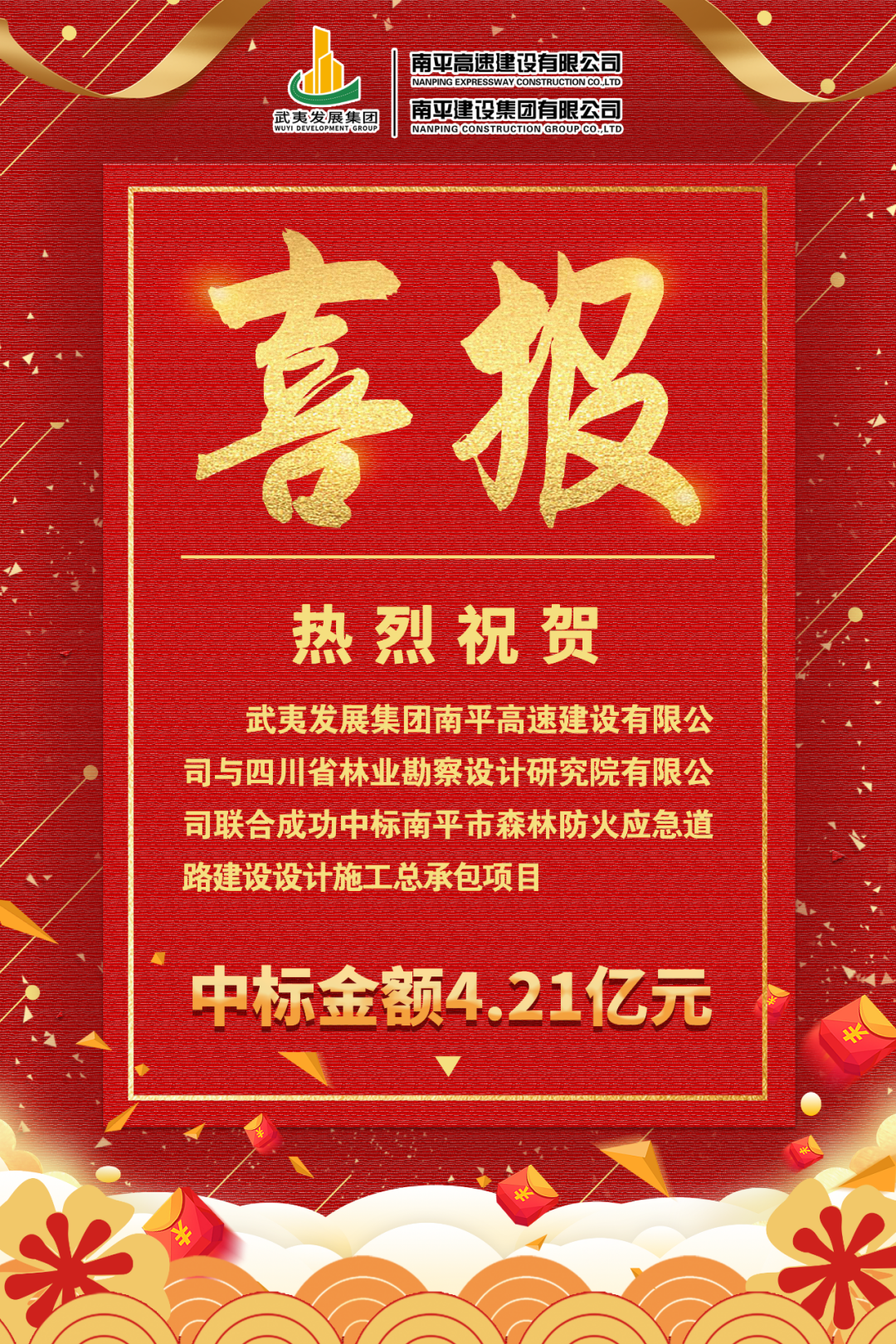 喜報(bào)|武發(fā)集團(tuán)南平高速建設(shè)公司成功聯(lián)合中標(biāo)南平市森林防火應(yīng)急道路建設(shè)設(shè)計(jì)施工總承包項(xiàng)目