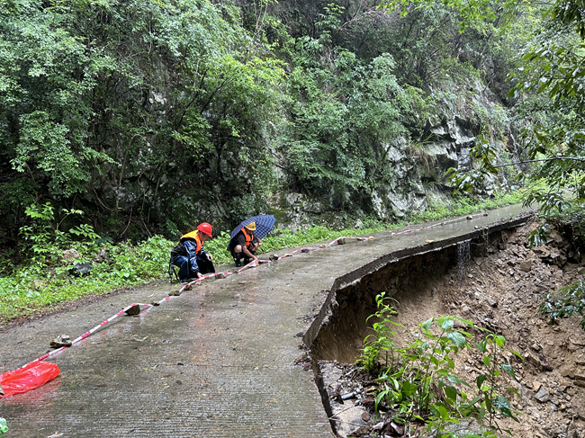 拿口鎮(zhèn)池下村對嚴(yán)重塌方路段設(shè)置警示標(biāo)識并封鎖路段。