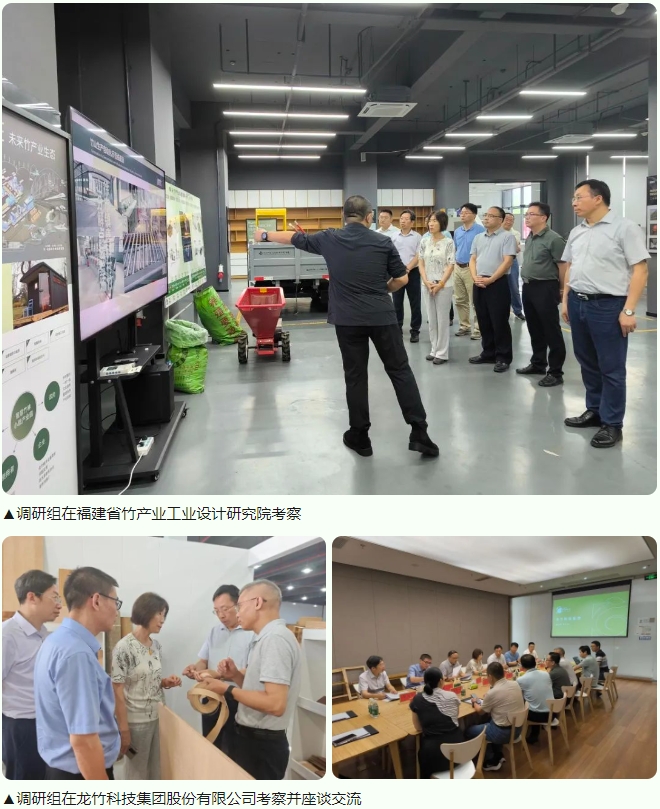 調(diào)研組首先前往南平市圖書館一體化服務(wù)平臺項目、南平佰翔武夷山水城大酒店,實地了解“竹元素”在實際場景中的應(yīng)用;隨后前往福建省竹產(chǎn)業(yè)工業(yè)設(shè)計研究院、龍竹科技集團股份有限公司、南平市綠色產(chǎn)業(yè)創(chuàng)新服務(wù)平臺等地考察,與相關(guān)負責(zé)人、技術(shù)人員進行了深入交流,詳細了解我市“以竹代塑”發(fā)展現(xiàn)狀,并為落實“以竹代塑”倡議、推動竹產(chǎn)業(yè)高質(zhì)量發(fā)展提出建設(shè)性意見建議。