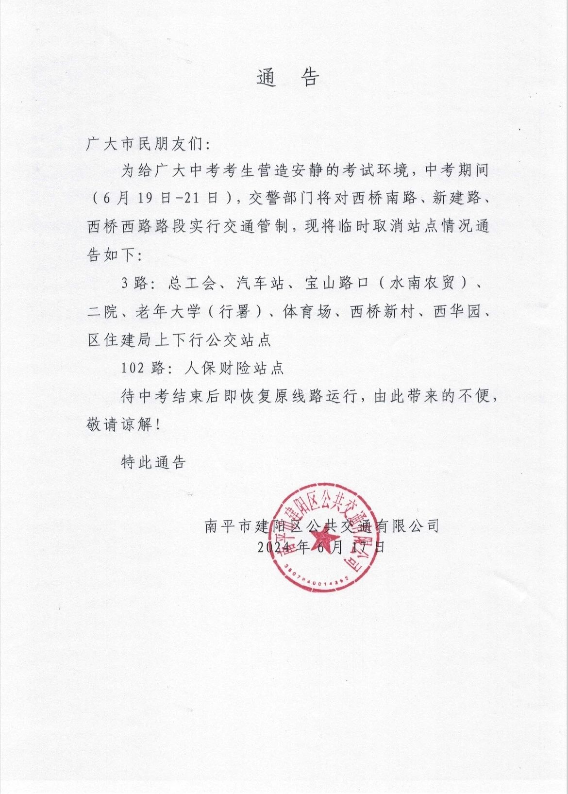公示公告|關(guān)于中考期間3路、102公交臨時(shí)取消站點(diǎn)的通告