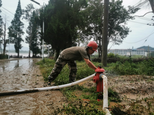 受強(qiáng)降雨和上游來水影響,拿口鎮(zhèn)轄區(qū)局部地區(qū)發(fā)生洪澇災(zāi)害。隨著洪峰平穩(wěn)過境,富屯溪水位降至警戒線以下較低安全水位,鎮(zhèn)區(qū)被洪水淹沒后的區(qū)域泥沙淤積。為盡快恢復(fù)群眾正常生產(chǎn)生活秩序,拿口鎮(zhèn)應(yīng)急救援隊沖鋒在前,積極開展災(zāi)后清淤工作。