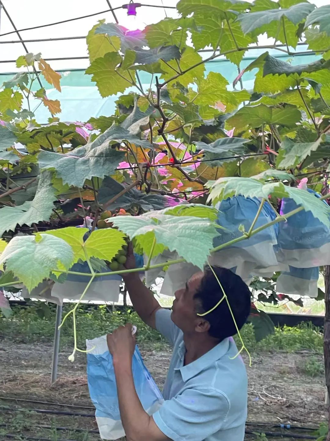 2023年12月,作為水南村葡萄產(chǎn)業(yè)的帶頭人,劉貴道入選南平市首批“鄉(xiāng)土科特派推廣員”。此后,他繼續(xù)盡心盡責(zé)帶領(lǐng)村民發(fā)展葡萄產(chǎn)業(yè),與科特派團(tuán)隊(duì)密切合作,組織葡萄種植大戶赴浙江嘉興、浙江湖州、江蘇南京、云南建水等地參觀培訓(xùn),實(shí)地考察陽(yáng)光玫瑰等優(yōu)良品種栽培技術(shù),不斷提升果農(nóng)種植水平。同時(shí),他還積極開展在葡萄園套種蠶豆、馬鈴薯等農(nóng)作物的實(shí)驗(yàn),經(jīng)福建省農(nóng)科院資源環(huán)境與土壤肥料研究所專家測(cè)產(chǎn),水南村葡萄套種馬鈴薯模式,有效產(chǎn)量達(dá)到每畝1000公斤。