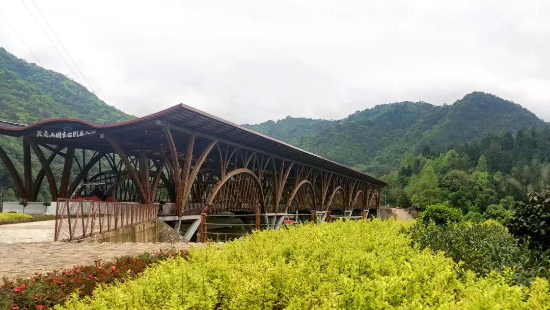 這座長168米、高約9米,采取5跨中承式連拱結(jié)構(gòu)的國內(nèi)最長竹廊橋,采用圓竹和鋼組合結(jié)構(gòu),使用竹材25100根,施工周期僅14個月!