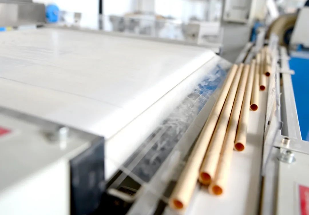▲龍竹科技集團(tuán)股份有限公司生產(chǎn)車間,經(jīng)過特殊工藝制成的竹吸管成品下線。(羅光耀 攝)