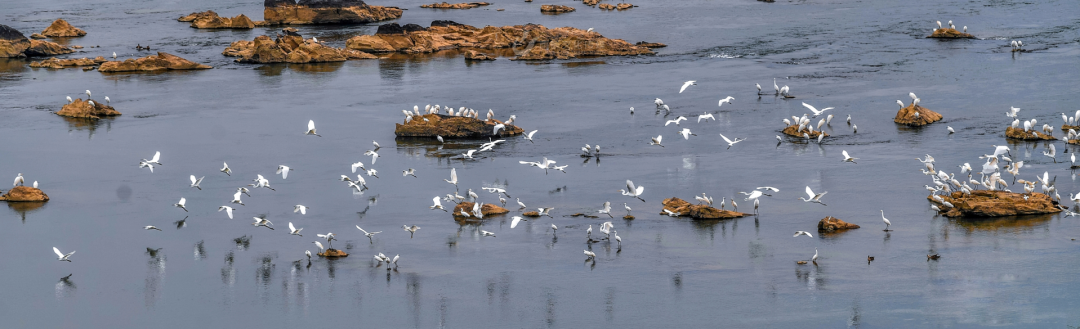 近日,建甌市建溪河畔,千鷺翔集。(吳震 攝)
