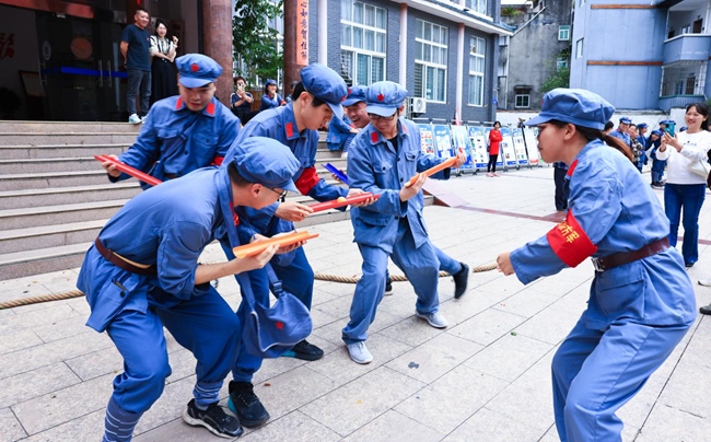 活動當日,10支參賽隊伍依次完成了“支前運糧”“過草地”“送雞毛信”“團結(jié)就是力量”等團體競賽項目,“沉浸式”感悟抗戰(zhàn)期間和大革命時期艱苦卓絕的奮斗精神。