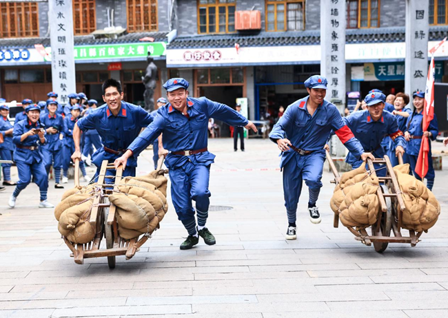 “紅軍戰(zhàn)士”支前運糧。(徐華山 攝)