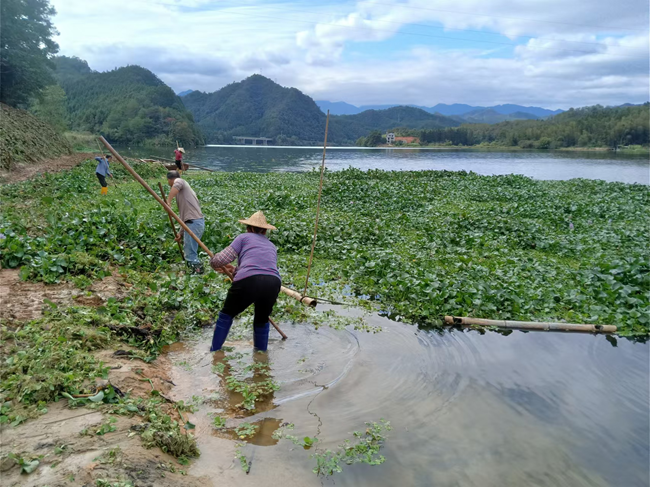 據(jù)了解,拿口鎮(zhèn)氣候較適合水葫蘆生長(zhǎng),如果不及時(shí)清理,水葫蘆會(huì)迅速蔓延,覆蓋湖面,影響湖水與空氣的交換,導(dǎo)致水質(zhì)惡化。同時(shí),大量水葫蘆還會(huì)影響千嶺湖的生態(tài)平衡,威脅到湖內(nèi)魚(yú)類等生物的生存環(huán)境,并對(duì)電站大壩產(chǎn)生負(fù)面影響。