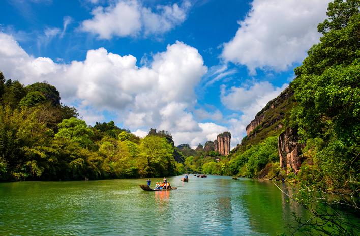 當前,武夷山國家公園內(nèi),森林覆蓋率提高到96.72%,地表水、大氣、森林土壤各項指標均達到國標I類標準,發(fā)現(xiàn)新物種29個。圖為碧水丹山的武夷山。 (張筱惜 攝)