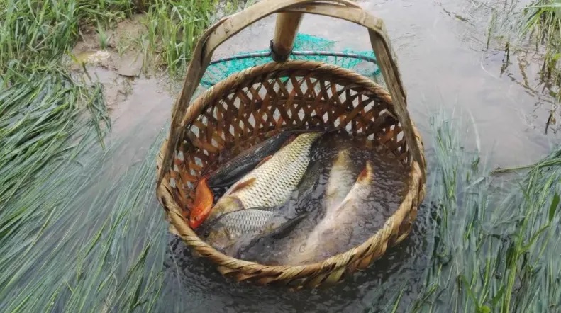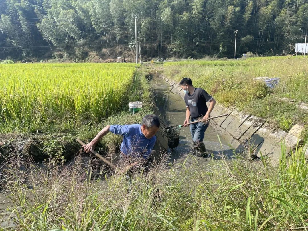 在止馬鎮(zhèn)仁厚村稻漁綜合種養(yǎng)數(shù)字農(nóng)業(yè)科技示范基地,村民們趁著晴好天氣,忙著捕撈稻魚。(圖源:光澤關(guān)注)