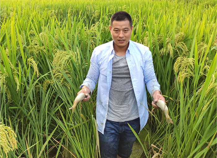 一個(gè)多月后,周建仁帶著滿滿的收獲回到村里,就租下了60畝地,開始平整田壟、墊高田埂、清塘消毒,準(zhǔn)備發(fā)展“稻漁共生”生態(tài)種養(yǎng)。在水稻下秧時(shí),他買來一萬尾魚苗放到60畝水稻田中。四個(gè)多月后,到了收獲的季節(jié),500多公斤的草魚和鯽魚,賣出了一公斤60元的價(jià)格,無公害的綠色稻米畝產(chǎn)值達(dá)3000多元。