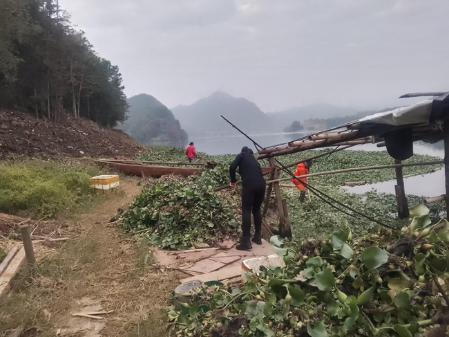 大武夷新聞網(wǎng)訊 近日,在拿口鎮(zhèn)千嶺湖,河道專管員手持網(wǎng)兜、打撈耙等工具,將密密麻麻的水葫蘆不斷撈起?!半m然氣溫低了些,但是水葫蘆長的還是很快,”河道專管員邊說著,手里的動(dòng)作也不停。