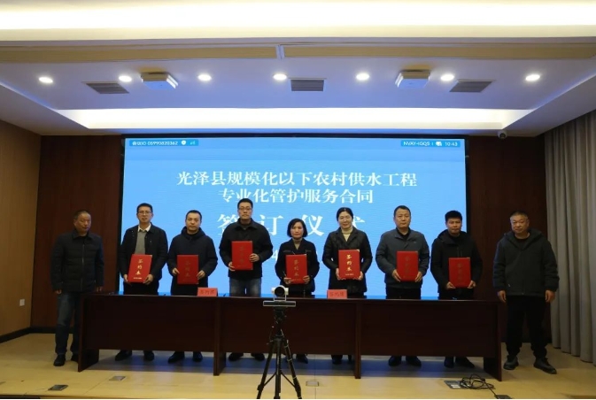 會(huì)上,7個(gè)涉農(nóng)鄉(xiāng)(鎮(zhèn))與鷺澤水務(wù)公司簽訂了單村及分散式供水工程管護(hù)協(xié)議。