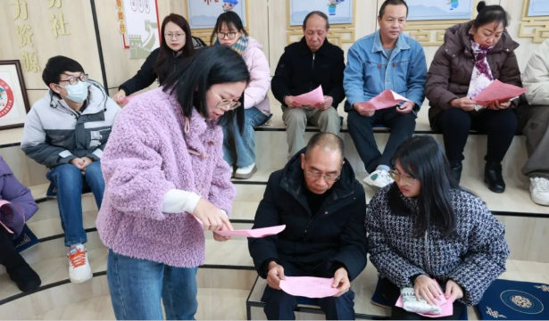 活動現(xiàn)場,志愿者向在場群眾發(fā)放移風(fēng)易俗宣傳單,倡導(dǎo)大家自覺抵制鋪張浪費、薄養(yǎng)厚葬、天價彩禮、封建迷信等不良陋習(xí),現(xiàn)場還設(shè)置有獎問答環(huán)節(jié),既增添活動的趣味性,又有效宣傳移風(fēng)易俗知識,讓群眾認(rèn)識到推進(jìn)移風(fēng)易俗,弘揚文明新風(fēng)的重要性。