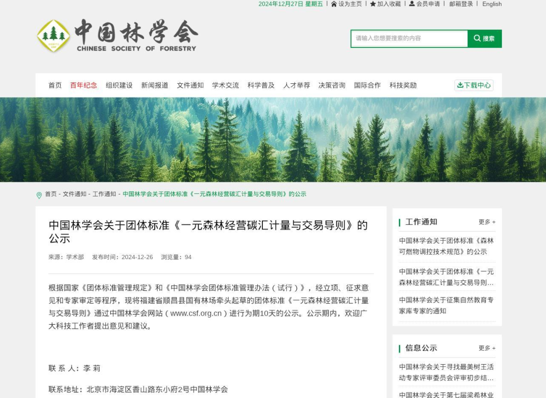 《一元森林經(jīng)營碳匯計(jì)量與交易導(dǎo)則》公示