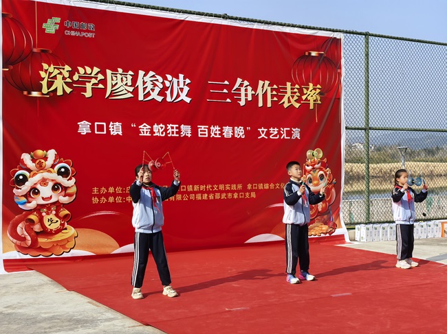 大武夷新聞網(wǎng)訊 新春佳節(jié)來臨之際,為深化拓展“深學廖俊波‘三爭’作表率”主題活動,倡導文明新風,營造歡樂祥和的節(jié)日氛圍。1月22日上午,拿口鎮(zhèn)莊上村、拿口鎮(zhèn)新時代文明實踐所、拿口鎮(zhèn)綜合文化站聯(lián)合中國郵政邵武市拿口支行舉辦“金蛇狂舞 百姓春晚”文藝匯演,讓群眾們一飽文化盛宴。