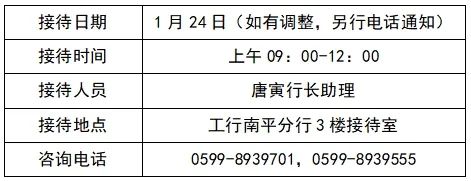 中國工商銀行南平分行2025年1月“行長接待日”公告