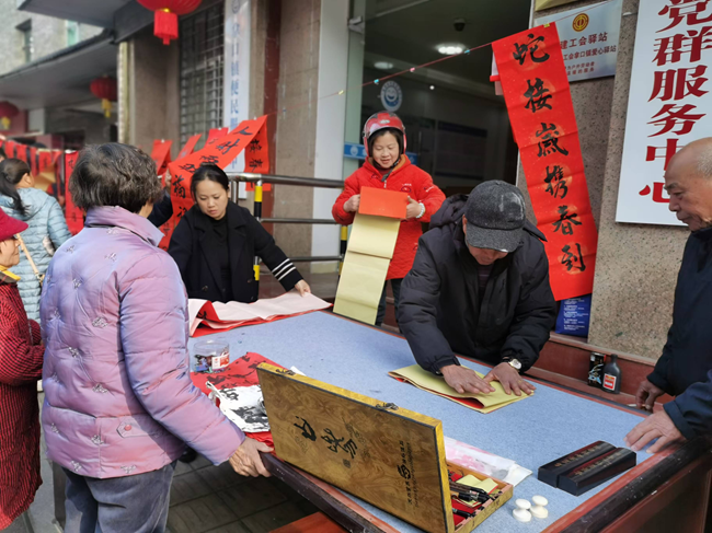 一次義寫春聯(lián)活動,墨香四溢送福氣。在拿口鎮(zhèn)黨群服務中心前開展的寫春聯(lián)活動同樣熱鬧非凡,書法老師鋪開紅紙,蘸飽墨汁,筆走龍蛇,一幅幅寓意吉祥的春聯(lián)躍然紙上。一旁的村民們看得興致勃勃,也各自領(lǐng)到了滿意的春聯(lián),“這春聯(lián)不僅字寫得漂亮,內(nèi)容也特別好,我們感受到了傳統(tǒng)文化的魅力,也感受到了濃濃的年味?!贝迕駛兗娂姙榛顒狱c贊。
