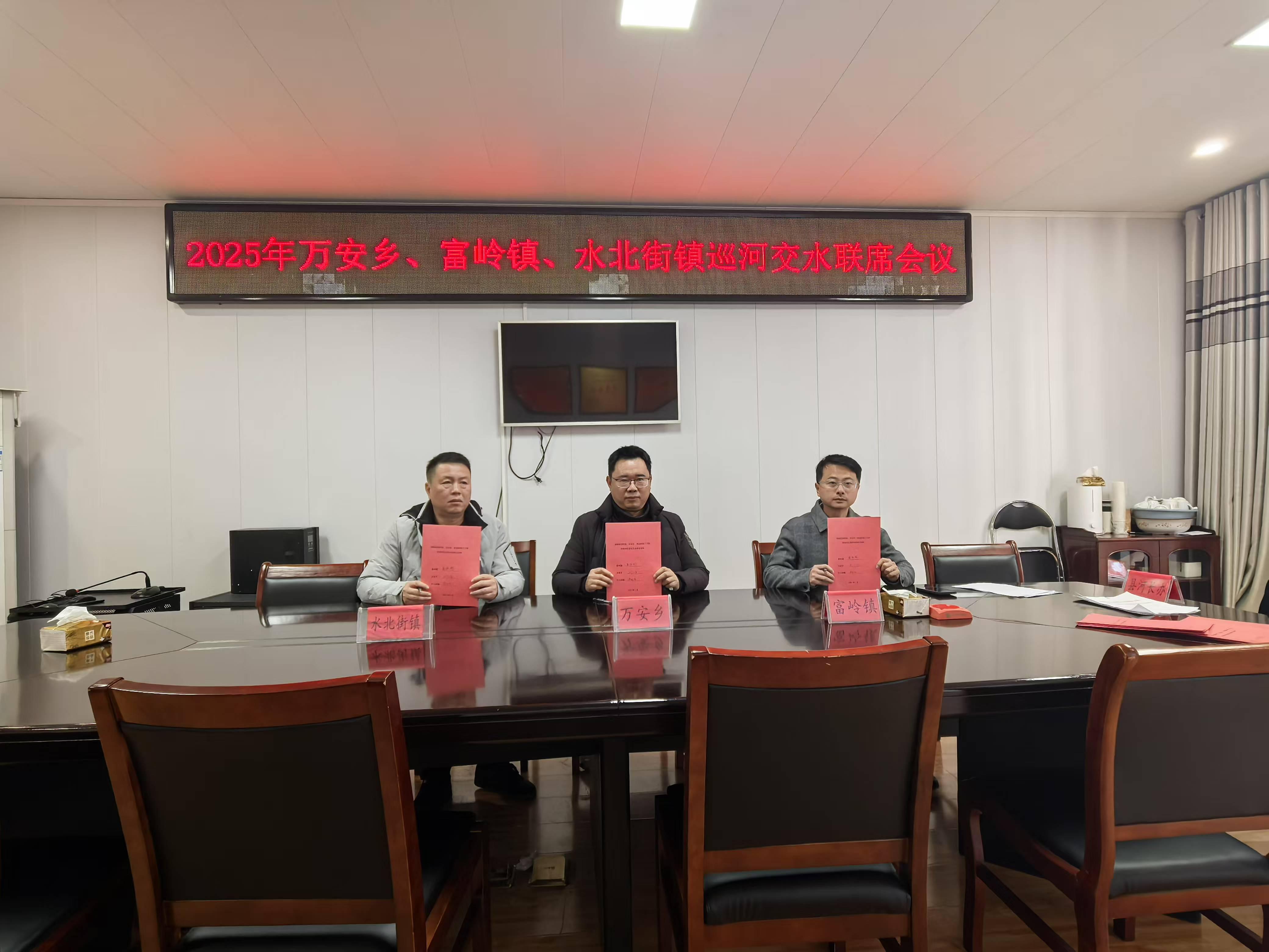 富嶺鎮(zhèn)人大主席姜驍鵬、萬安鄉(xiāng)副書記劉志海、水北街鎮(zhèn)黨群服務(wù)中心主任蔡祎強,帶領(lǐng)河長辦工作人員及村河段長到兩地上下游交界處開展巡河交水活動,實地查看黃碧村與王元村交水點、浦潭村與瑞安村交水點沿河實地察看河道安全防護情況及小流域斷面水質(zhì)、春節(jié)期間環(huán)境衛(wèi)生等問題。