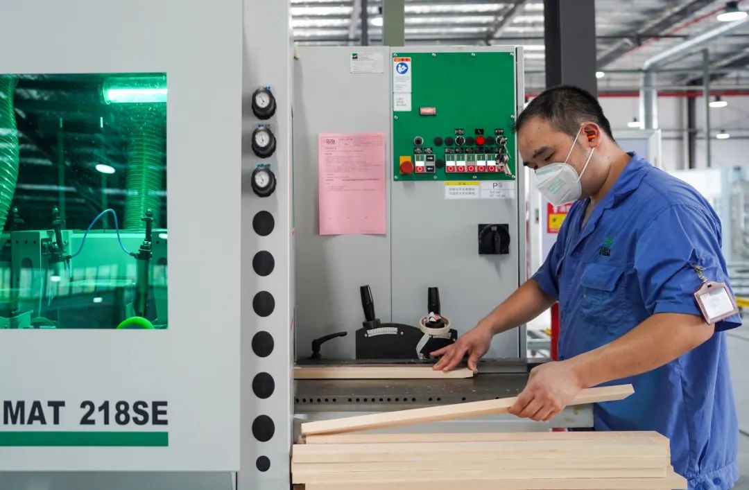福建杜氏木業(yè)有限公司高端智能家具生產(chǎn)項目車間,工人在操作生產(chǎn)設備。(張行健 攝)