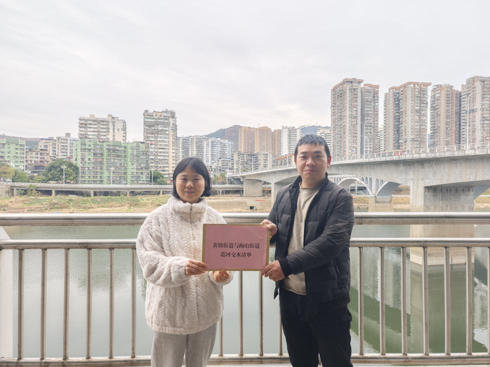 2月17日,黃墩街道、梅山街道聯(lián)合開展“鎮(zhèn)鎮(zhèn)”巡河交水行動。黃墩街道副河長、黨工委委員、人武部部長、辦事處副主任吳旭龍,梅山街道副河長、辦事處副主任魏曉娜及河長辦相關(guān)工作人員共同前往建溪,實地察看河流水質(zhì)與整治情況,現(xiàn)場交接斷面水質(zhì)清單。