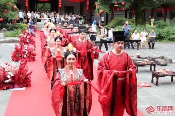 在“朱子婚禮”上,新人們通過(guò)傳統(tǒng)婚禮儀式,感受中華文化的深厚底蘊(yùn)