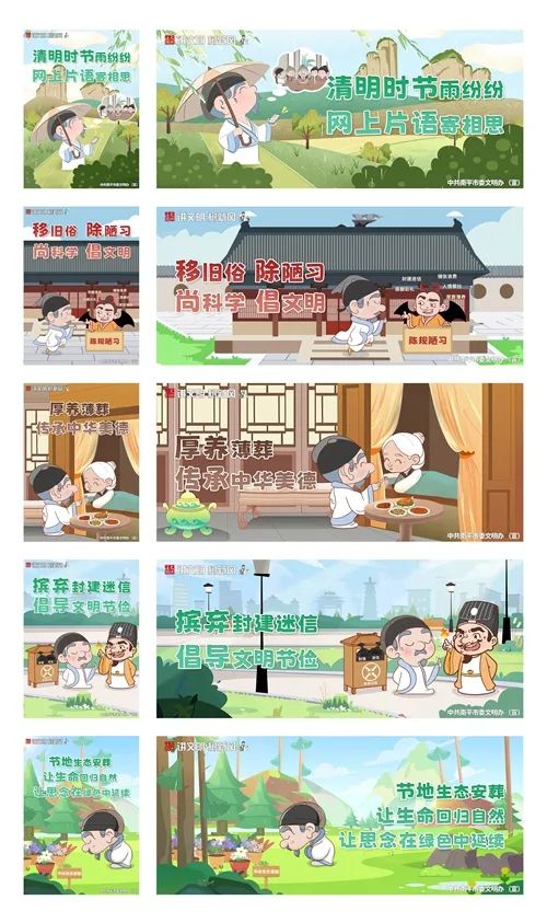 近年來(lái),南平市委文明辦充分挖掘本土文化資源,將傳統(tǒng)文化與現(xiàn)代文明相結(jié)合,創(chuàng)新形式推動(dòng)移風(fēng)易俗工作。通過(guò)結(jié)合朱子文化、黃峭文化等本土文化元素,創(chuàng)作了殯葬移風(fēng)易俗動(dòng)漫公益廣告,以生動(dòng)形象的方式向群眾傳播文明新風(fēng)。